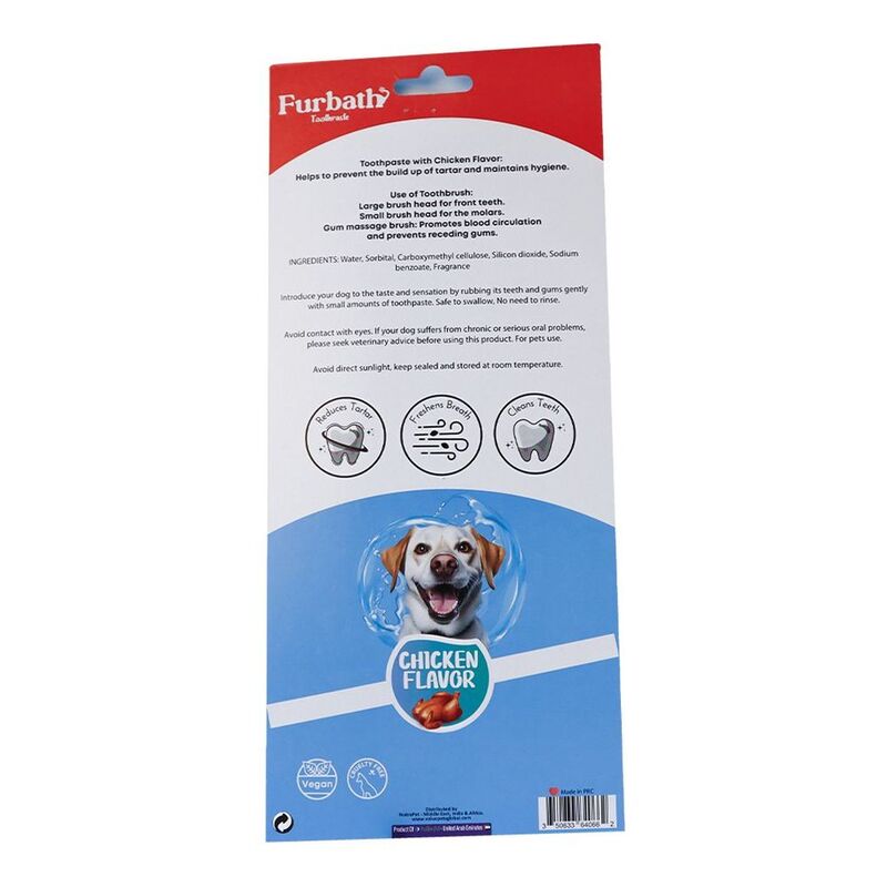 Furbath Chicken Flavored Toothpaste for Dogs - 100g, your solution for maintaining your furry friend's oral health and hygiene. Designed with the needs of dogs in mind, this toothpaste not only freshens breath but also helps reduce tartar buildup and promotes clean teeth, ensuring your canine companion's dental well-being.