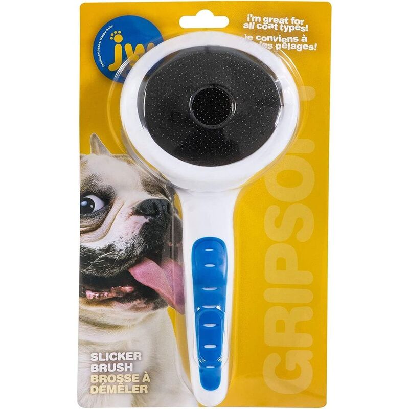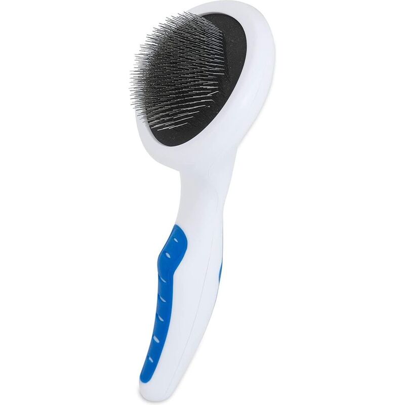 Features: -Slicker brush. -Designed especially for pets with sensitive skin and fine, silky coats. -Helps untangle mats and snarls. -Used by professional groomers to remove dead and shedding hair. Product Type: -Brush / Comb. Pet Category: -Cats/Dogs. Color: -Blacks & Grays. Generic Dimensions: -5.5'' H x 2.75'' W x 10'' D. Dimensions: Overall Width - Side to Side: -2.75 Inches. Overall Length - End to End: -5.5 Inches. Overall Product Weight: -0.32 Pounds.