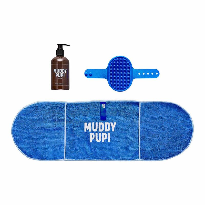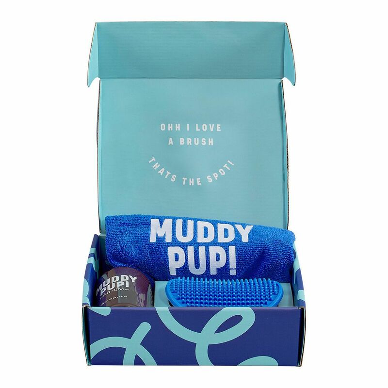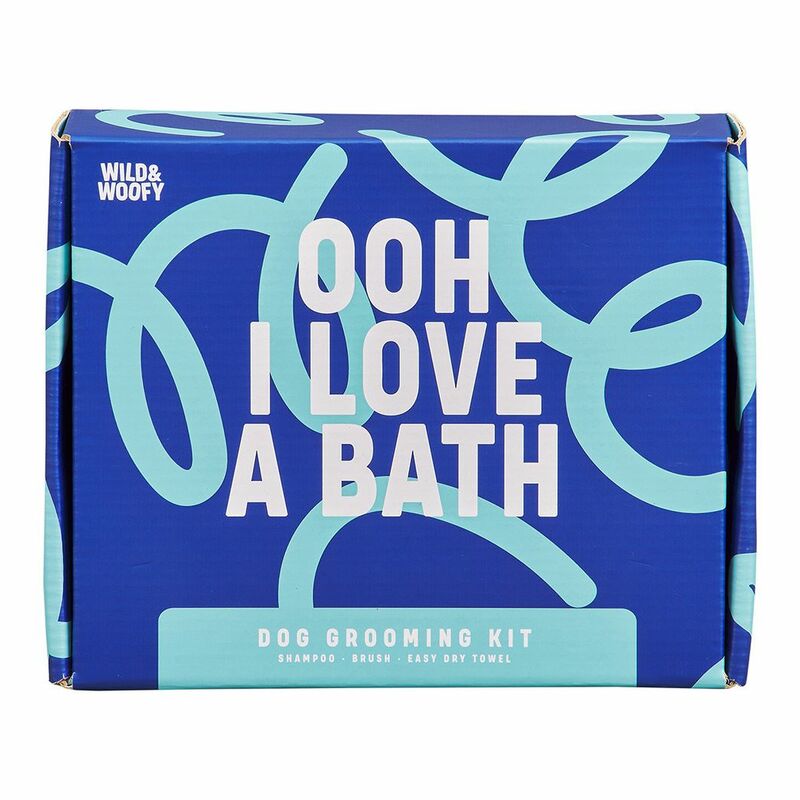 Ooh I love a bath! Get your muddy pup clean as a whistle with this Dog Grooming Kit from Wild & Woofy.  Comes packaged in blue gift box with spring print that reads 'Ooh I Love a Bath'. The perfect gift for any dog owner, it comes packaged in a blue box with a fun spring print. Includes 10 fl oz Aloe Vera & Oatmeal Shampoo, brush and glove drying towel that reads 'Muddy Pup'. Comes packaged in a box measuring 7.30inch L x 9inch W x 2.70inch H.
