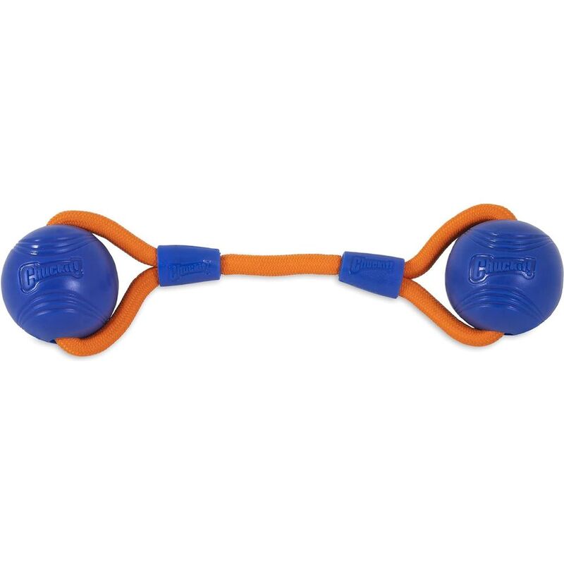 Chuckit Crunch Duo Tug: Designed to satisfy your dog's instinctual curiosity for sounds, the Super Crunch Ball pairs up two Chuckit! Balls with an elastic tug and a crackling, crunchy sound your dogs will love during games of toss and tug
