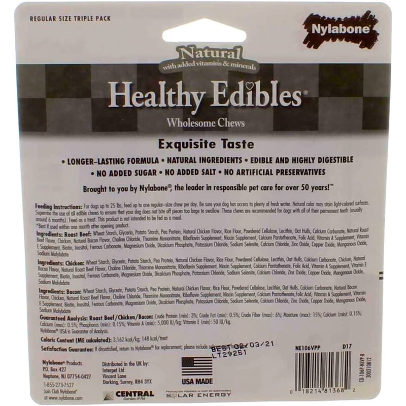 Nylabone Longer Lasting Roast Beef Chicken Bacon Variety Triple Pck Blister Crd Rgular