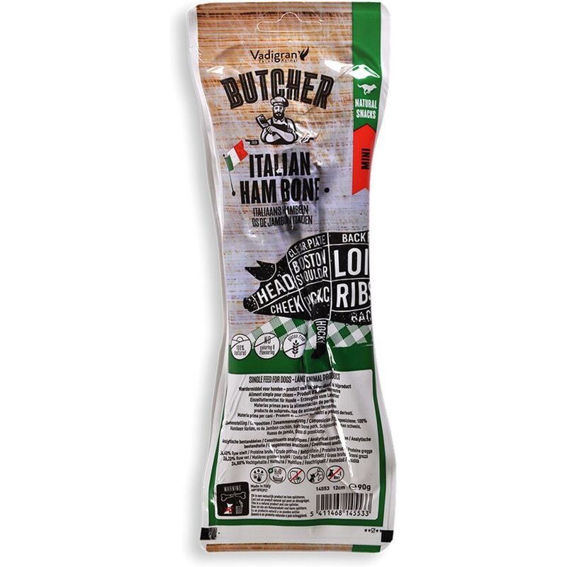 The Vadigran Italian Ham Bone is free from artificial additives, colors, and preservatives, making it a wholesome and safe option for your furry friend. Whether your dog is a playful pup or a seasoned chewer, this treat offers a satisfying and enjoyable way for them to engage their senses and maintain their oral hygiene.