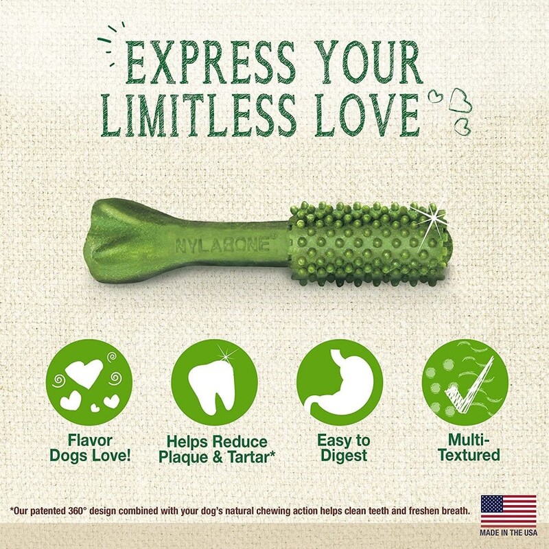 Each natural dental chew for dogs includes 360-degree cleaning nubs that reduce plaque and tartar
