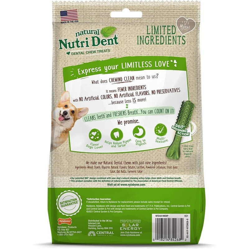 Nutri Dent dental dog treats feature a simple formula with limited ingredients