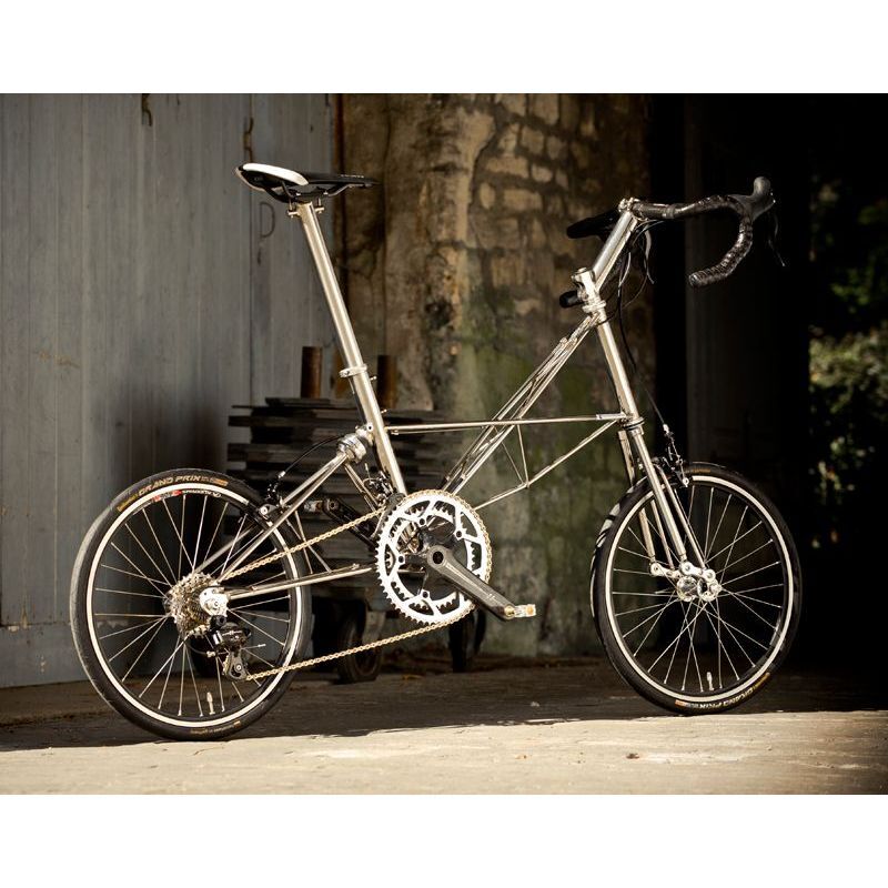 The 'hound Dog' of the Moulton series, designed for long-distance sports races. Aggressive riding position, 22 speeds. Compact wheels and low frame reduce air resistance, special design allows you to install suspension on both wheels combining all this features with the impressively light weight of less than 9 kg.
