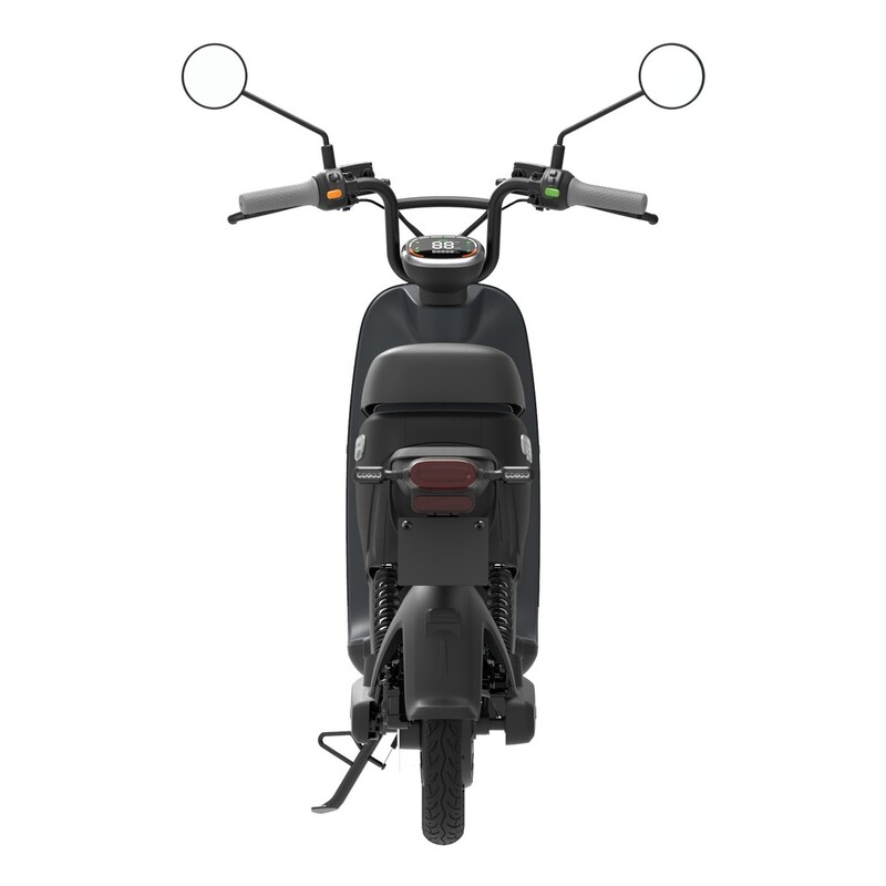 Thanks to the two high-performance sensors on both the seat and the parking stand, the eMoped will actively judge either it is safe to start riding or not. Indeed, when the vehicle is parked (with the parking stand out) or when the rider is not firmly seated, the orange light on the dashboard will remain on and the vehicle will not move forward even when the throttle is turned. Once well seated and the parking stand removed, the dashboard will turn green and will indicate that you are READY to go!