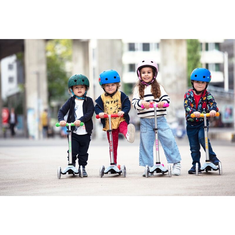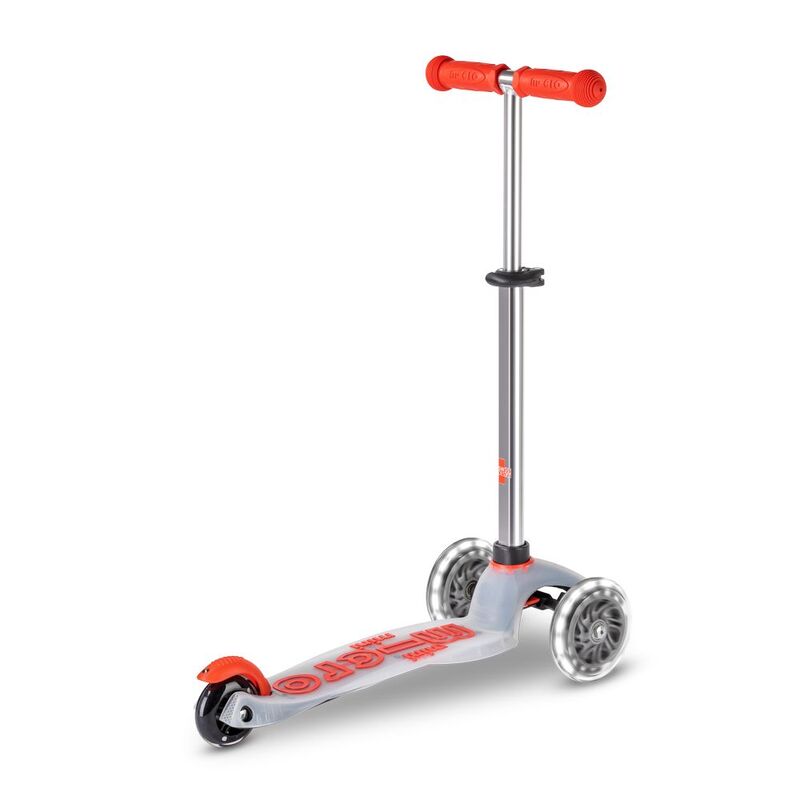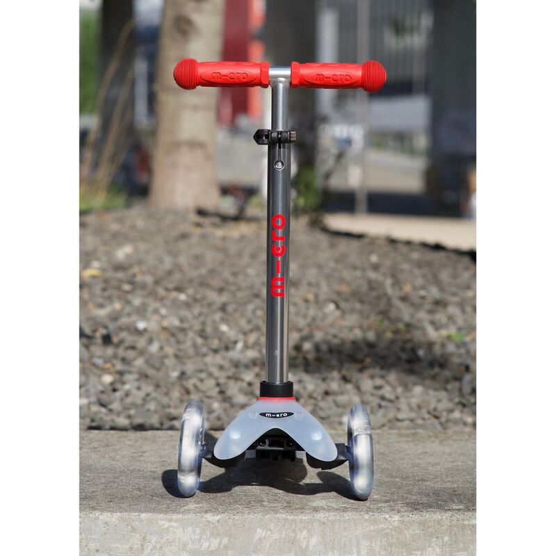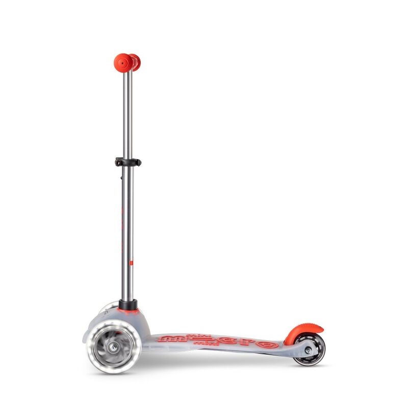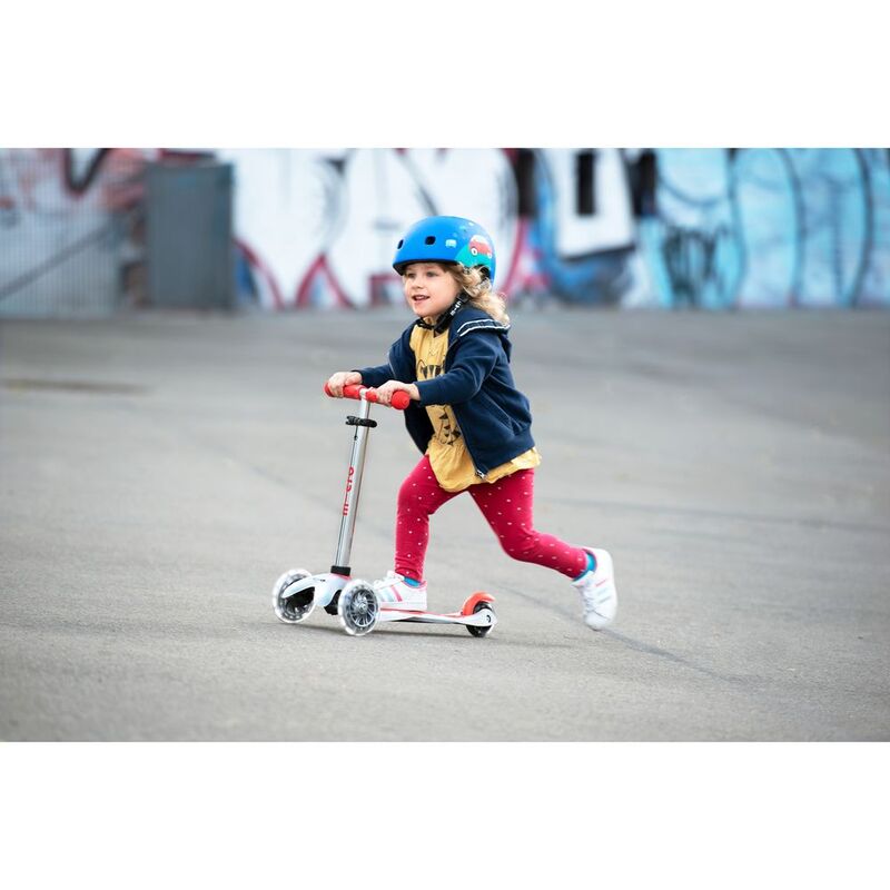 Introducing the Mini Micro Deluxe Flux LED, the ultimate ride-on for children aged 2-5 years old. With its techy character and transparent deck design, this scooter is sure to turn heads. The Mini Micro Deluxe Flux LED features LED wheels that not only make it more visible but also add a cool factor to your child's ride. Our patented lean-to-steer mechanism promotes balance and motor skills, making it an excellent tool for your child's physical development. The height-adjustable handlebar ensures that the scooter grows with your child, while the footplate with extra grippy silicone mouldings provides maximum traction for a safe and comfortable ride. The shiny alu handlebar adds a touch of style to the Mini Micro Deluxe Flux LED. Your child will love the sleek look and feel of the scooter. Let your child ride in style with the Mini Micro Deluxe Flux LED.