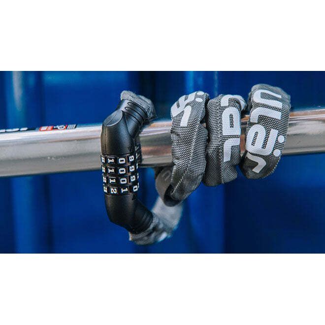 The only 5 mm chain combination lock in the Neo Chain collection. High quality nylon sleeve in 9 colors coats the steel chain to provide security to your bicycle. It can be attached to the top tube and is ideal for urban rides.