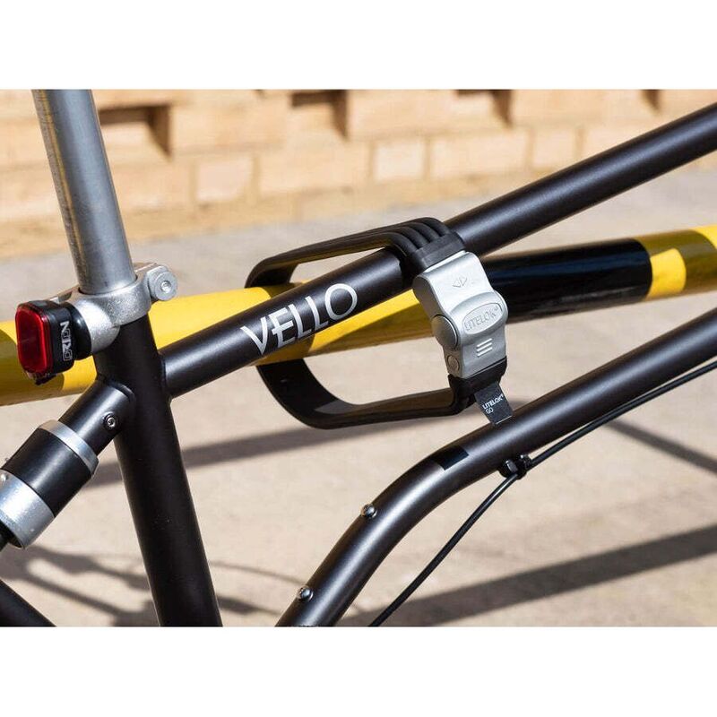 The Litelok GO U-Flex lock with high security level is easy-to-mount onto the Vello bike. This U-shaped flexible bikelock fits into any Vello bikeframe and does not require an additional bracket. The Litelok does both: complements the design of a Vello bike and keeps it safe wherever you are.