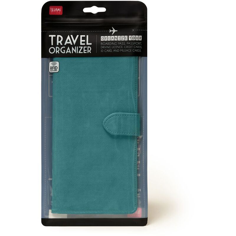 Ready to fly? With the Legami Travel Organiser - Petrol Blue, you certainly will be. Consisting of 4 large pockets to store your boarding pass and passport, 7 small pockets for credit cards and tickets and RFID blocking, all sealed with a magnetic clasp, you can relax before boarding.