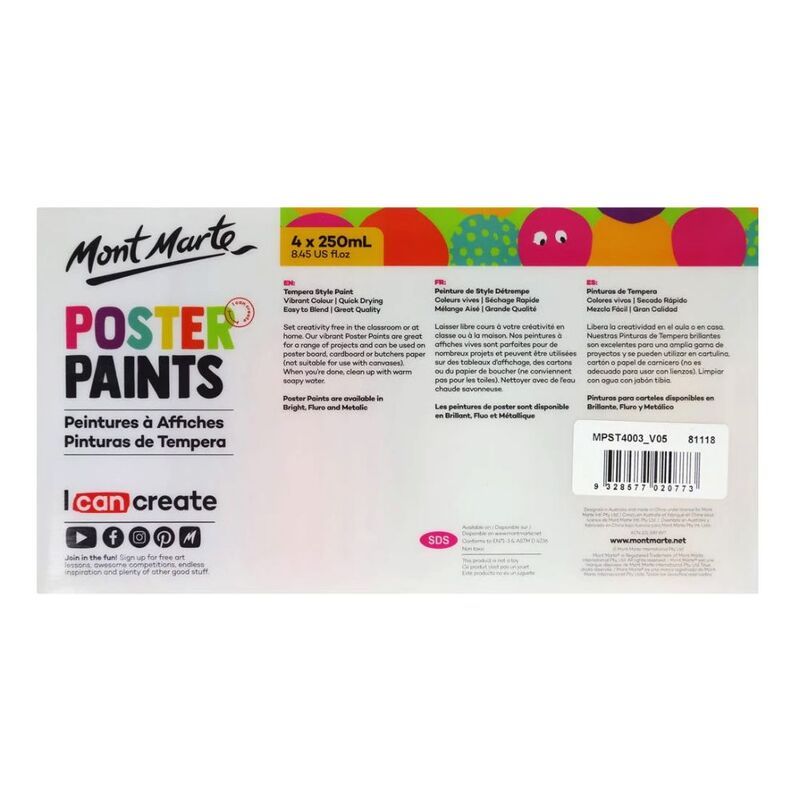 Mont Marte Poster Paint 250ml Metallic (4 Pieces)