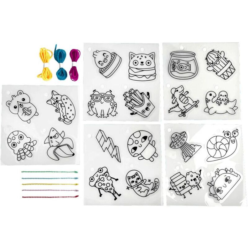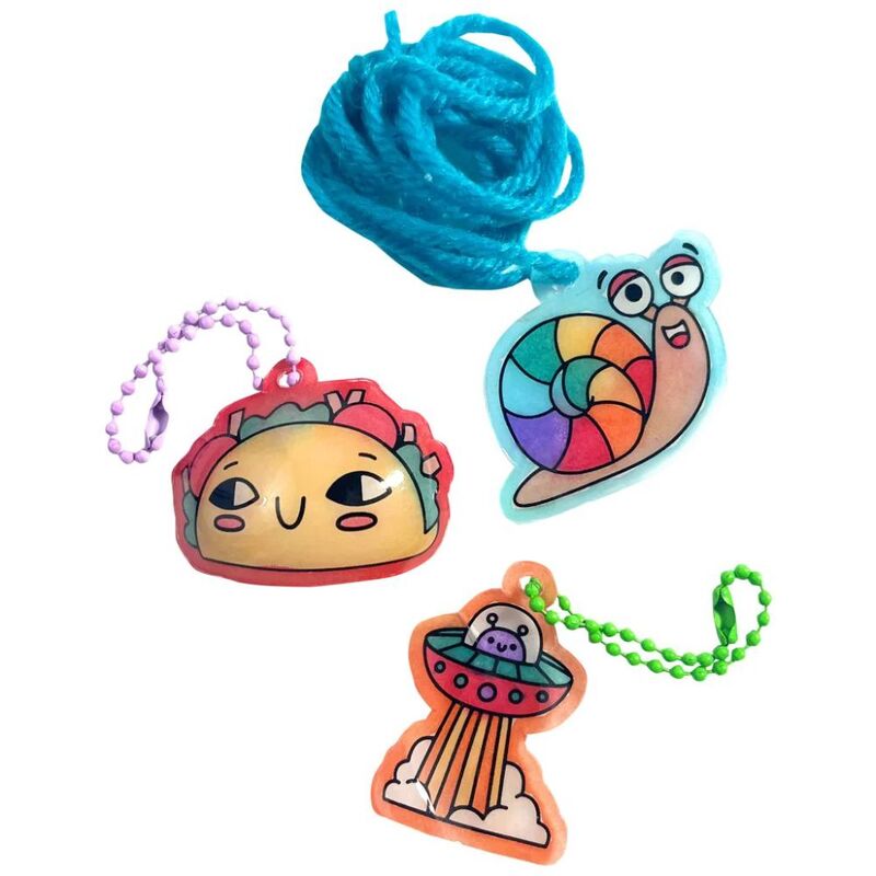 Turn a ho-hum afternoon into a good time with this shrink art kit! It includes 20 quirky charms, three differently colored cords, and five differently colored ball chains. You simply provide the markers or color pencils and the oven! Made from lightweight plastic, these charms are perfect for hanging on a backpack or keychain!