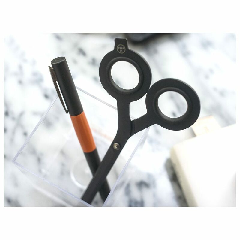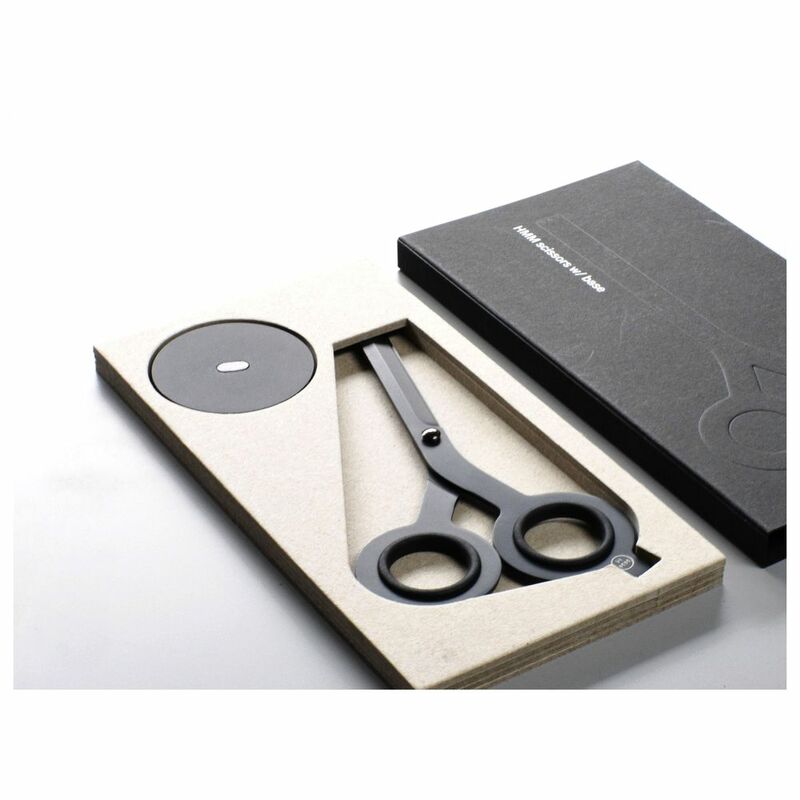 The HMM Scissors are a 2-in-1 essential tool reimagined with style. The unique design allows one flip of the tool to turn the scissors into a boxcutter. They provide a crisp, accurate cut every time for every type of project, and the wide blades and solid weight will leave you feeling confident as you work. Made with Japanese steel and Taiwanese craftsmanship, these Scissors are so sleek that you will want to keep them within easy reach right on your desk.Base - a sleek, minimalist home to the HMM Scissors​. The custom-made magnet keeps the square-tip Scissors on a firm footing while displaying the product well to show off your sense of style. When tools are worth flaunting, don't hide them away.