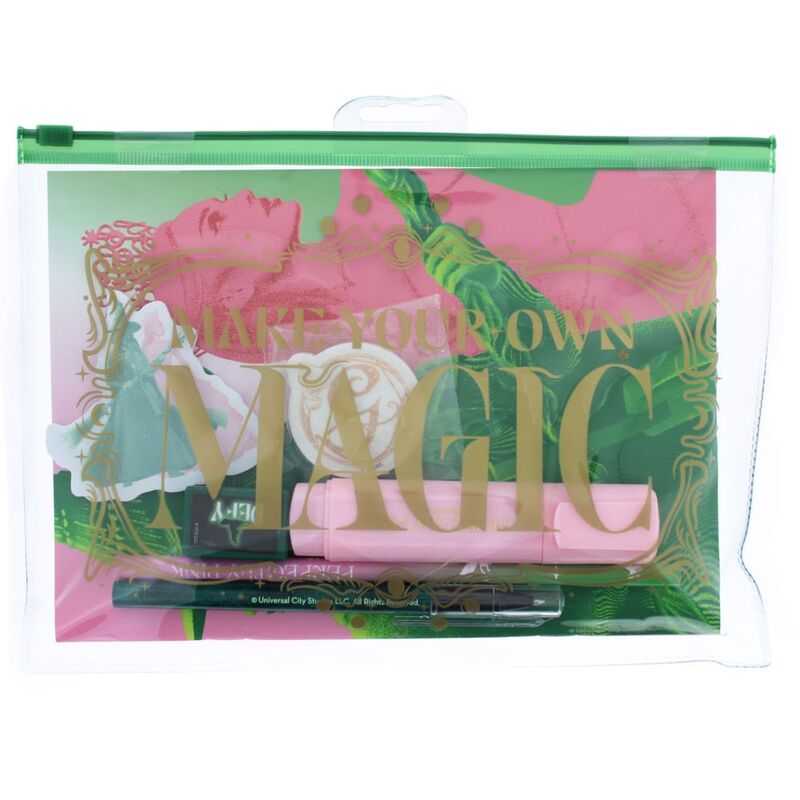 If you are a Wicked fan then this stationery set is essential for you. It has everything and more inside including an A5 notebook with 20 sheets of lined paper, die cut sticky notes, full length wooden pencil. As well as a ballpoint pen with black ink, pink highlighter, sharpener and an eraser. All this comes inside a zip lock wallet so you can keep it all together wherever you go.