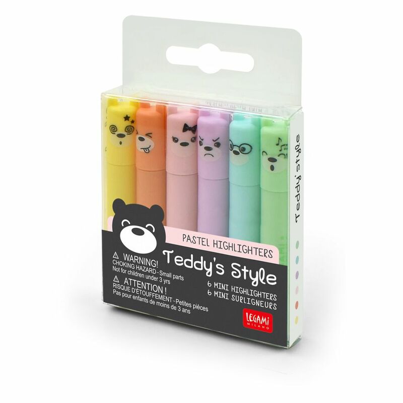 Legami Teddy's Style - Mini Pastel Highlighters (Set of 6)