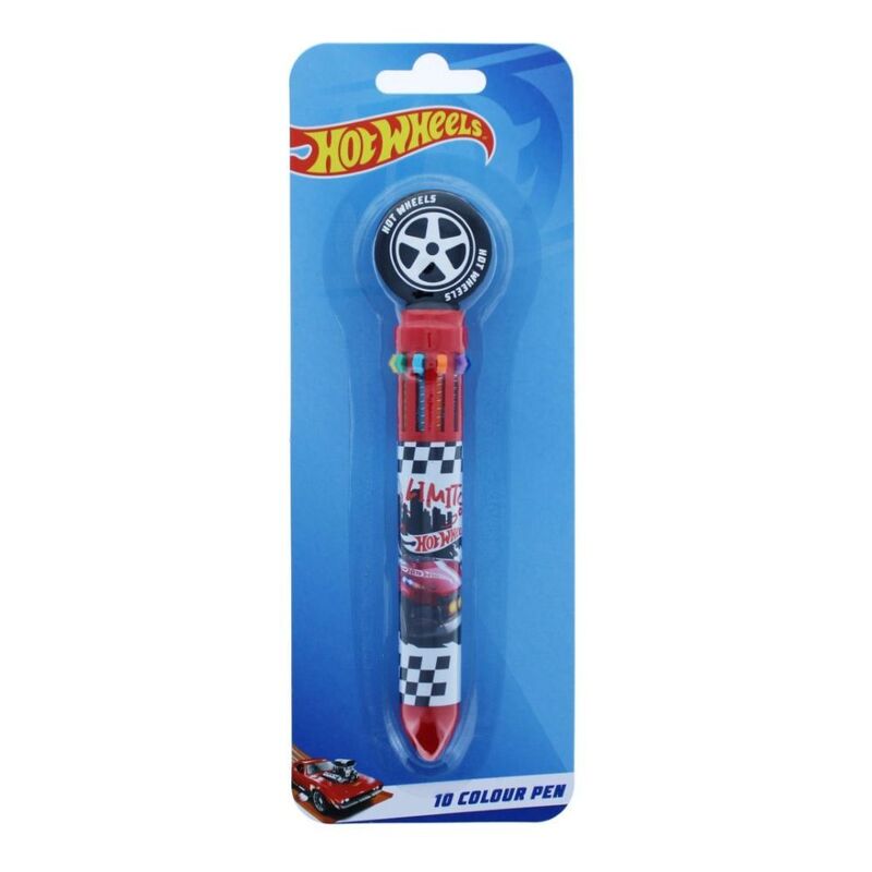 With 10 different colors to choose from, the Hot Wheels 10 Color Pen has all your writing needs covered! The pen features a 2D spinning topper of the iconic wheel and an awesome design printed down the barrel. Choose your preferred ink color and press down the clicker, to change the color simply press down the wheel topper before selecting another color. The pen contains 10 colors in 1 pen perfect for adding a bit of color to your notes and doodles.