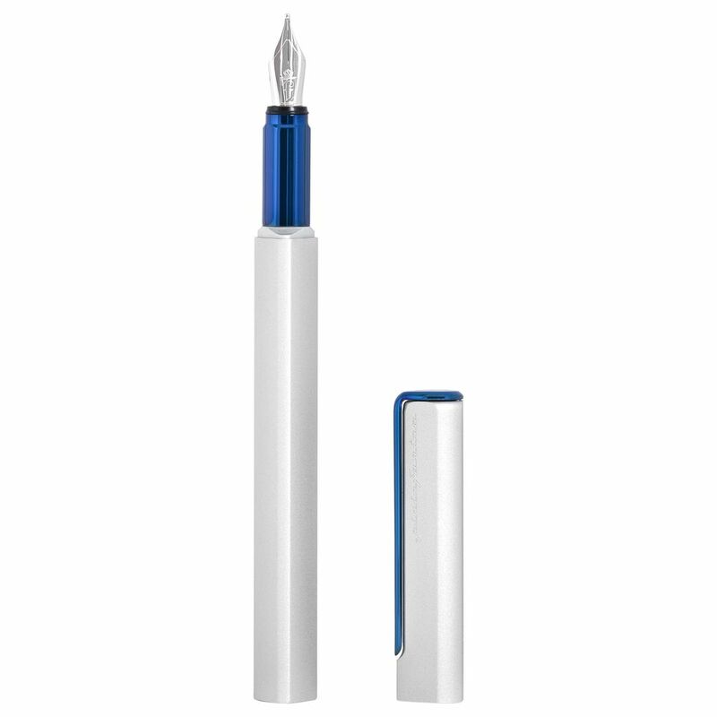 Pininfarina Segno PF One Fountain Pen Blue Silver/Nib Medium - Schmidt K6 Converter Black Ink