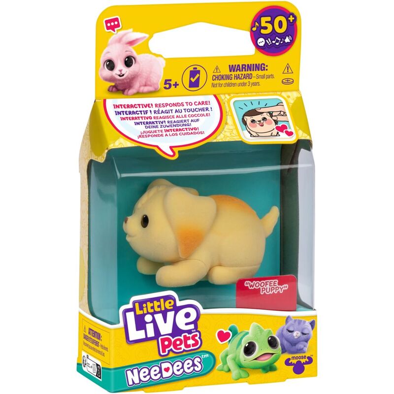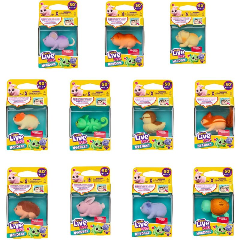 Say hello to Little Live Pets NeeDees, the interactive, wearable friends ready to bring endless fun wherever your child goes. These delightful creatures thrive on care and attention, signaling their needs with unique sounds. Whether they're playful, cold, hungry, or sleepy, NeeDees call out "NeeDee NeeDee" for your child to respond, turning every interaction into a loving bond. Begin the exciting journey of caring for NeeDees. Each interaction is a chance to nurture and grow your child's sense of responsibility and joy. Collect all 13 to see how much happiness these lovable pets can bring into your child's life. Embrace the challenge, care for them, and watch your collection of Little Live Pets NeeDees thrive! Each NeeDee has a built-in system to track care. Miss their calls, and the score decreases. Respond timely, and watch the score soar. Achieve the highest score and hear your NeeDee sing a joyous song!