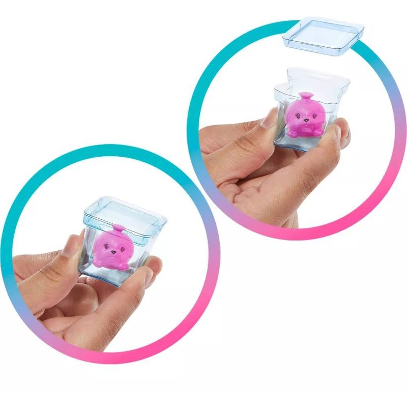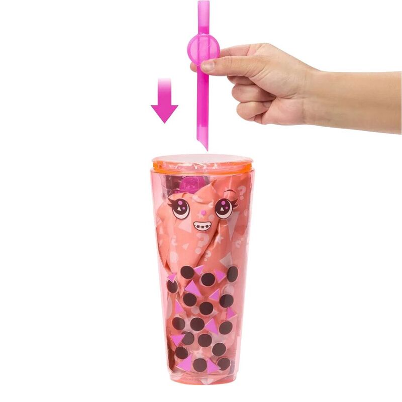 Barbie Pop Reveal Boba Tea Series dolls offer a sensory unboxing experience with eight surprises! Unscrew the lid with the Slime and poke through the film with the straw for squishy fun. Peel the film on the cup to reveal a boba tea-scented Barbie doll and eight more surprises! Which doll will you reveal? There's Taro Milk, Berry Bliss, Green Tea or Mango Mochi. Continue unboxing to discover two reusable ice cubes that pop open to reveal a skirt and pair of shoes. Mystery bags reveal a straw, a purse and a squishy, scented matching pet! Discover more wow with color-change transformations on Barbie doll's face. Kids will want to collect them all! Each doll sold separately, subject to availability. Dolls cannot stand alone. Colors and decorations may vary.