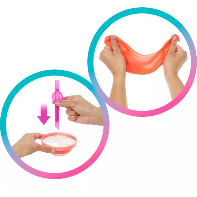 - Unscrew the lid with the Slime and use the straw to poke through the film to discover squishy fun!