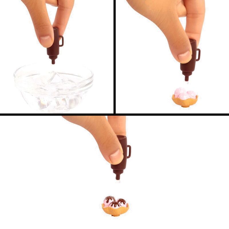 Includes 1 Skipper™ doll wearing uniform and shoes, 1 counter with register and soft-serve machine, 1 color-change sundae, 1 fillable syrup bottle, 3 snacks, 1 drink, 2 utensils and to-go tray. Doll cannot stand alone. Color and decorations may vary.