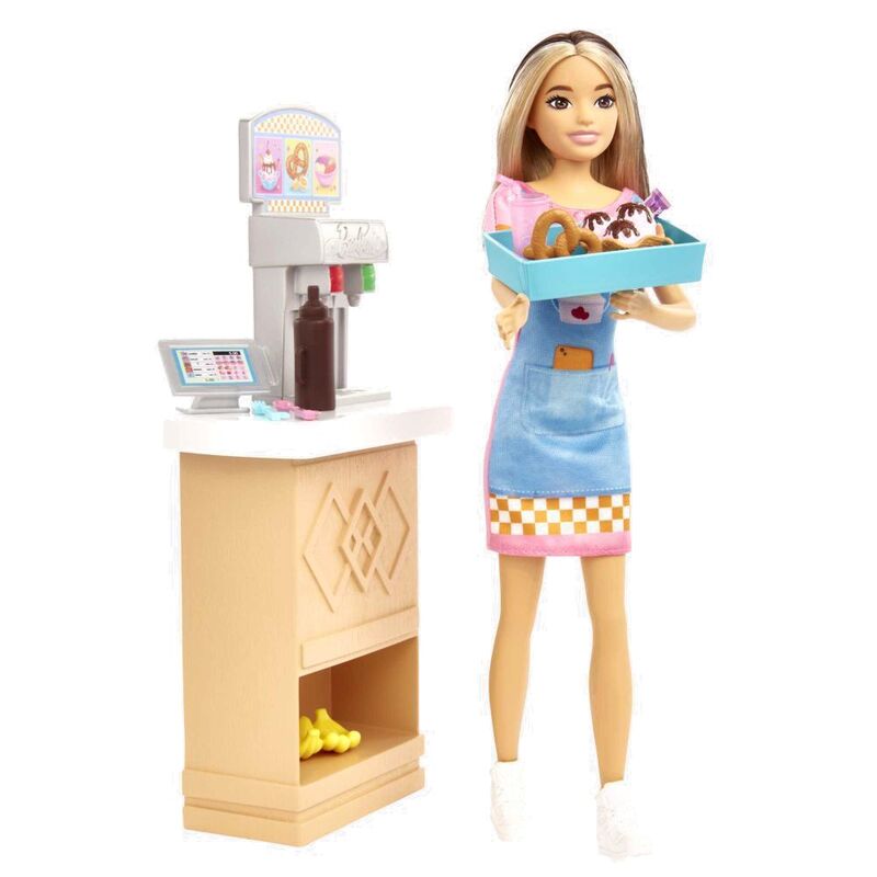 - The Barbie® set features Skipper™ doll in her onscreen-inspired uniform, a snack counter with soft-serve machine and register, a color-change sundae and 8 additional storytelling accessories.