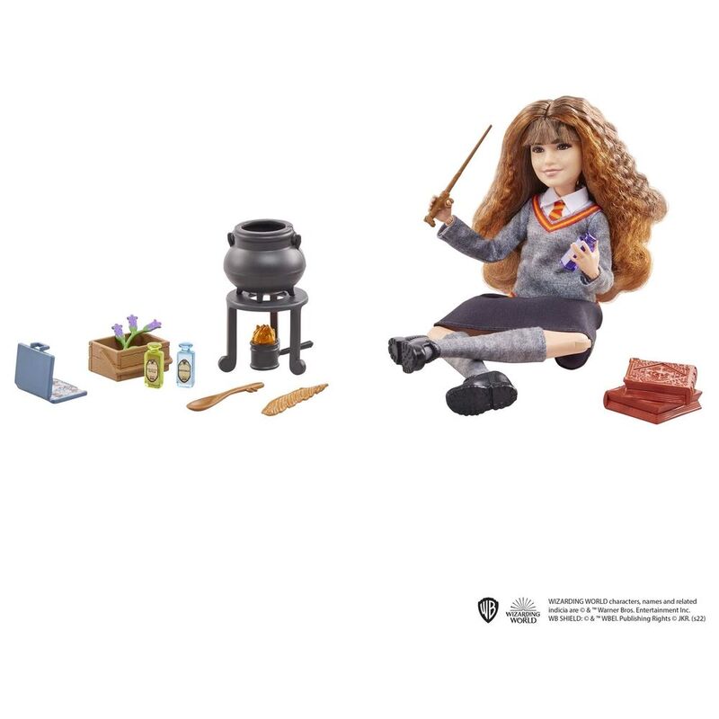 - Help Hermione doll prepare for Potions Class with 10 storytelling pieces, including her personalized wand and a cauldron lit by a 'flame.'