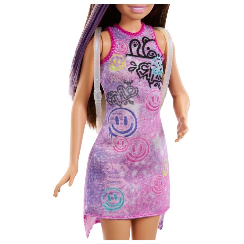 With Barbie Family and Friends dolls and toys, kids can play out the fun and friendship among this close squad! The younger sister of Barbie, Skipper doll is ready to rock an adventure wearing a colorful dress with graphic print, white sneakers and backpack. For more storytelling fun, kids can collect other toys in the Family and Friends line. Doll cannot stand alone. Colors and decorations may vary.