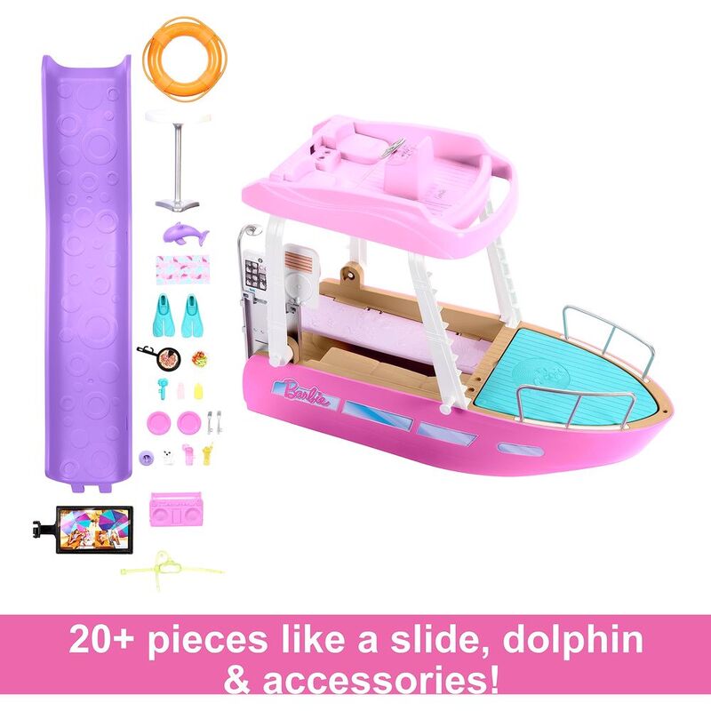 - 1 Barbie® Dream Boat™ with slide and assorted accessories. Colors and decorations may vary.