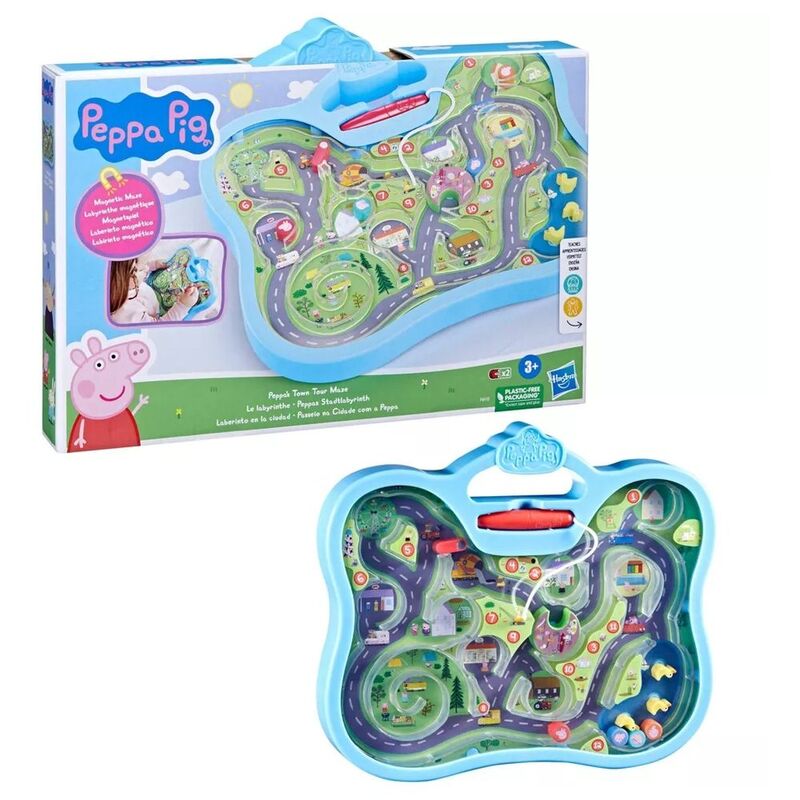 • EXPLORE PEPPA’S TOWN: Use the stylus to help Peppa Pig and her family find their way around town with this fun magnetic maze toy