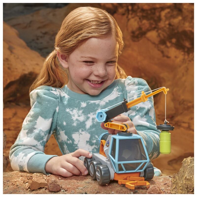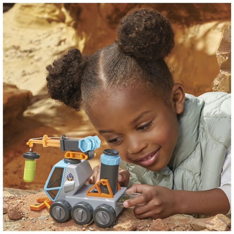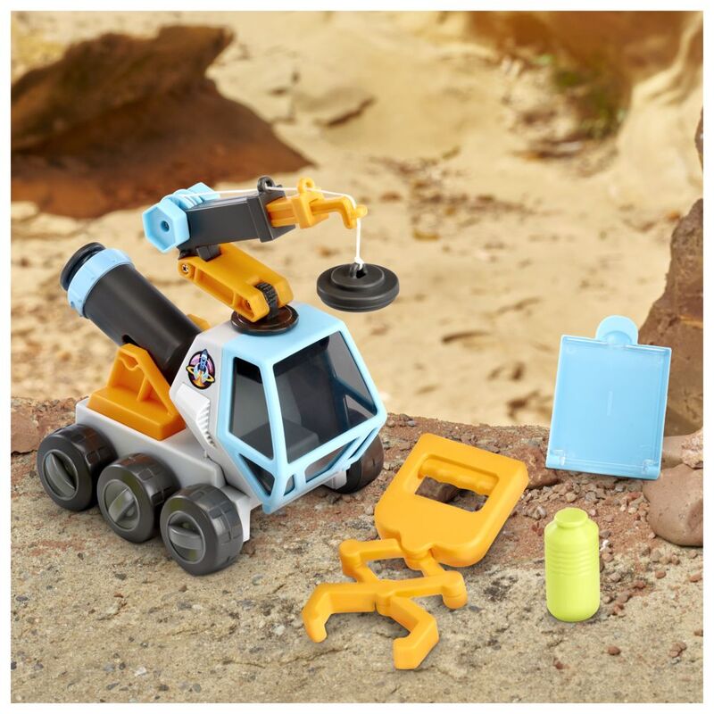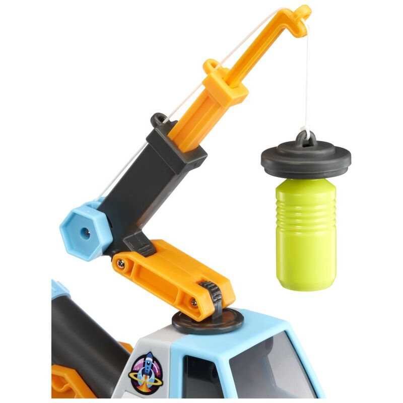 REACH FOR THE STARS. Pick up rocks or the included magnetic canister. The front of the Space Rover features a detachable extending grabber
