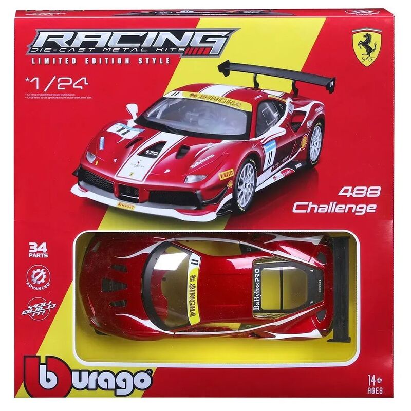 Bburago Formula 1 Ferrari Challenge Formula Racing 2017 488 1.24 Racing Model Kit Without Plastic Stand - Die Cast