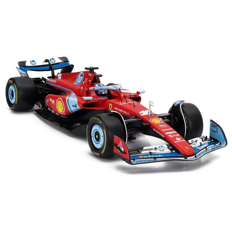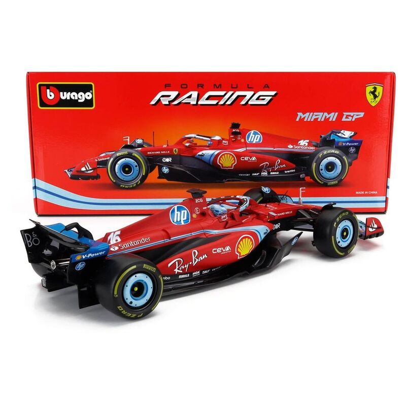 Bburago Formula 1Ferrari Miami Gp Sf24 1.18 With Helmet & Plastic Stand Die Cast