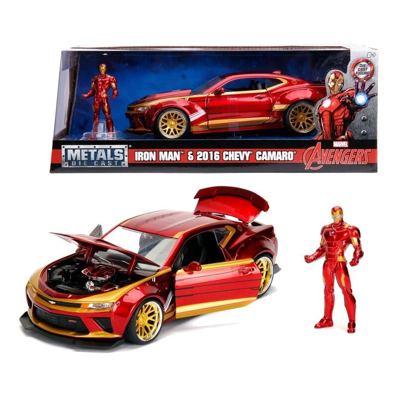 Jada Toys Metals Marvel Avengers Iron Man And 2016 Chevy Camaro Diecast Model Car With Figure 1.24 Scale