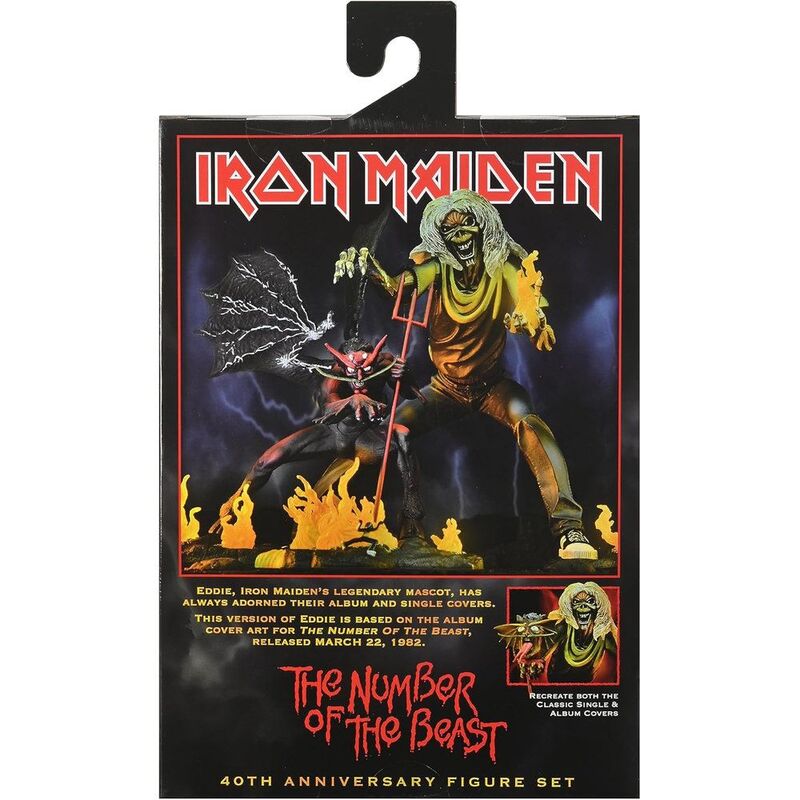 It's Eddie, Iron Maiden's legendary mascot, as he appears on The Number of the Beast album and single covers! Celebrate the 40th anniversary of this metal masterpiece with this 7 inch scale figure set that lets you recreate Derek Riggs' art for both the iconic 1982 album and title track single. Eddie features stunning detail in paint and sculpt that really recreates the illustrations, and is puppeteering the devil himself, who has his own even smaller Eddie puppet. The set also includes a Satan's head accessory to recreate the cover art for 'The Number of the Beast' single cover. Comes in special 40th anniversary 5-panel packaging with opening front flap.