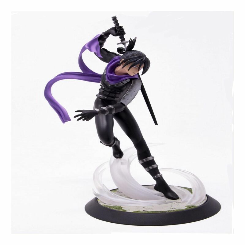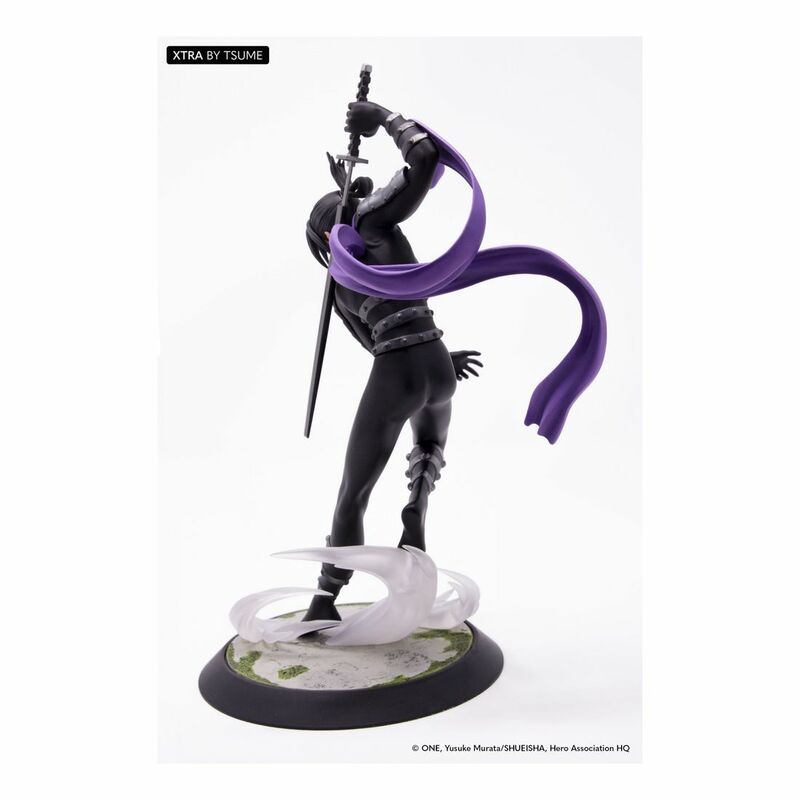 Saitama! Next time we meet, it’ll be your demise! I, Speed-O-Sound Sonic, the ultimate ninja, will bring you down without fail! Sonic to Saitama.This XTRA By Tsume figurine of Speed-O-Sound Sonic is an interpretation of his first encounter with Saitama, while both were in the woods, looking for Hammerhead. We see him brandishing his ninjato, ready to perform a Full Frontal Attack, dressed in his black ninja jumpsuit reinforced with a few pieces of armor.