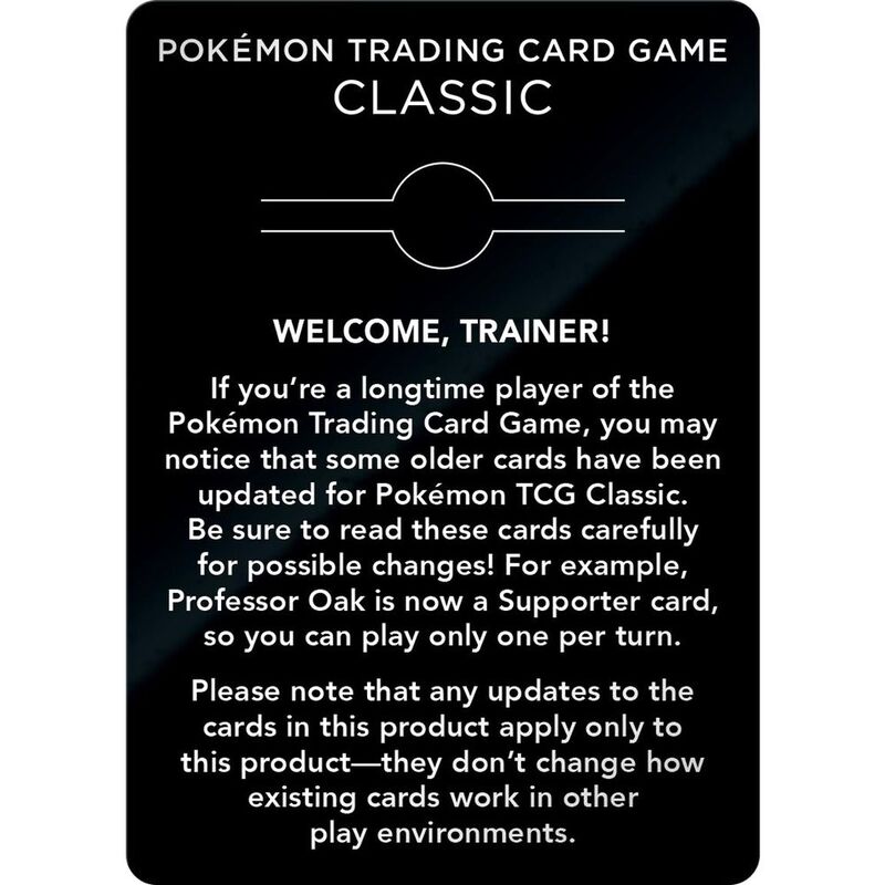Note: Cards included in Pokémon TCG Classic cannot be used at official tournaments, except for Basic Energy cards.