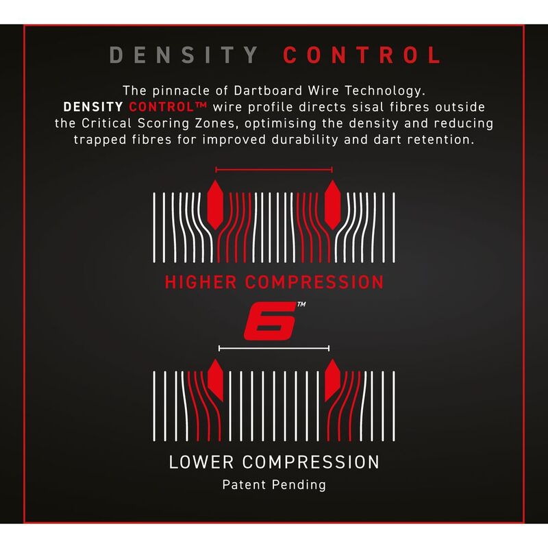 Blade’s pioneering web design features the latest ‘Density Control™’ wire for optimum fibre density and improved dart retention in the double, treble and bullseye zones, for maximum scoring power. The ultra-thin 60° angled wire deflects darts into the scoring area for absolute minimal bounce outs. The fully hardened bullseye and outer bull, both featuring 'Density Control wire', are now 25% thinner. Fitted with the easy adjust Rota-Lock mounting system, the Blade 6 fits any wall allowing you to start playing within minutes.