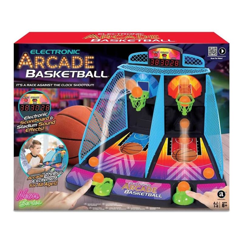 The high-speed, high excitement, ultra-fun basketball shooting Game! Play just like at the arcade in this 2 player head-to-head race against the clock! Each players score is shown on the large electronic scoreboard and stadium sound effects cheer you on as time counts down!