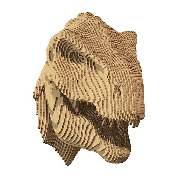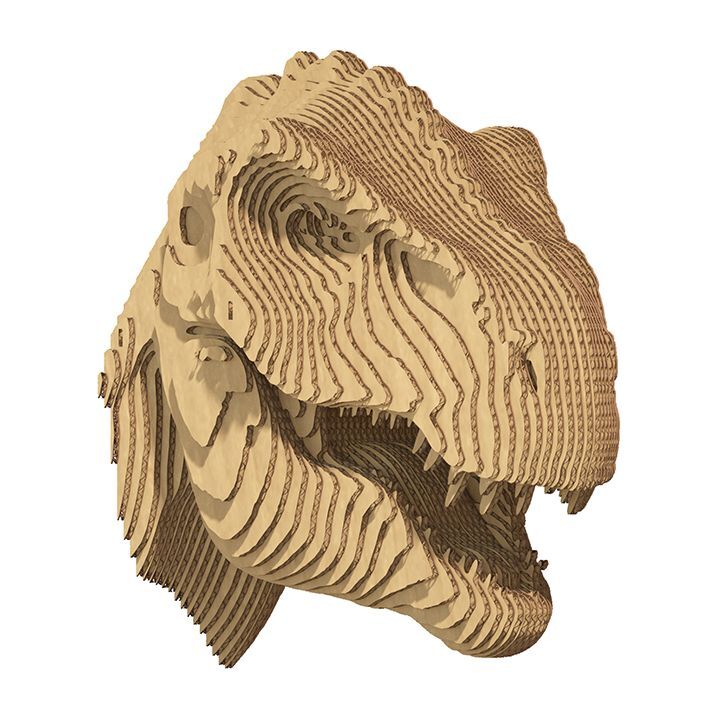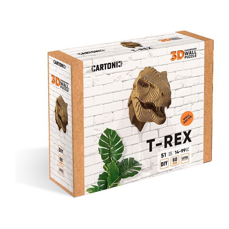 T-REX heads all possible dinosaur top charts, of course, if they exist. The T-Rex had quite short arms but compensated for this disadvantage with big, sharp teeth 20 cm long each. It was one of the biggest meat-eaters to ever inhabit the Earth (or at least in the last 66-68 millions years). It was up to 12,3–12,4 meters in length. The head was around 1,25 meters long! Our Cartonic cardboard wall 3D puzzle is significantly smaller, completely safe, and will become a bright accent piece in any space.
