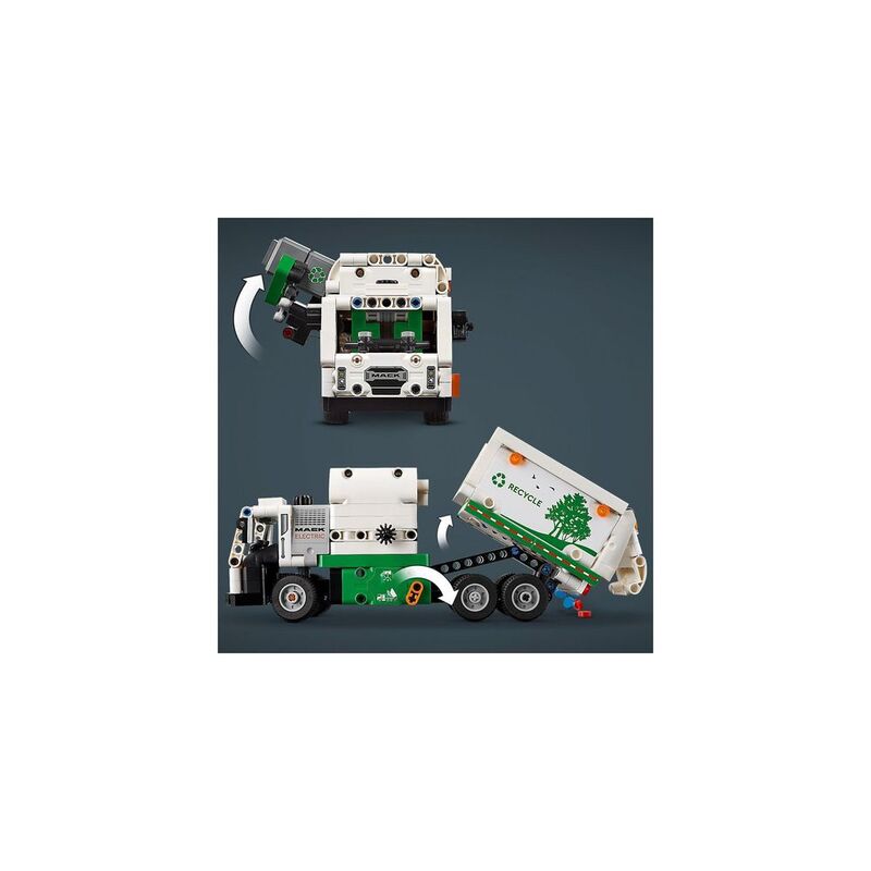• Truck toy for kids aged 8+ – The LEGO® Technic Mack® LR Electric Garbage Truck for boys and girls features a side loader to grab, lift and tip the rubbish bins