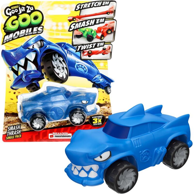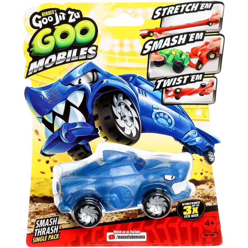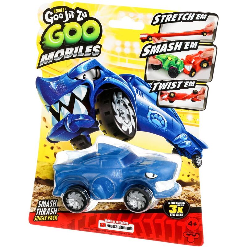 Heroes of Goo Jit Zu Goo Mobiles! Shape Shifting Rides made to collide! These stretchable, squishable cars move like nothing else on the road! Stetch Them! Smash Them! Twist Them! Fix Them and start again! Smash Thrash moves like nothing else! There’s 4 single cars to collect - why not add Powerhouse Pantaro, Smash Thrash or Wreckin’ Rock Jaw to your collection too? A brand new ALL-GOO way to play! Heroes of Goo Jit Zu Goo Mobiles! Goo Yah! Suitable from 4 years.