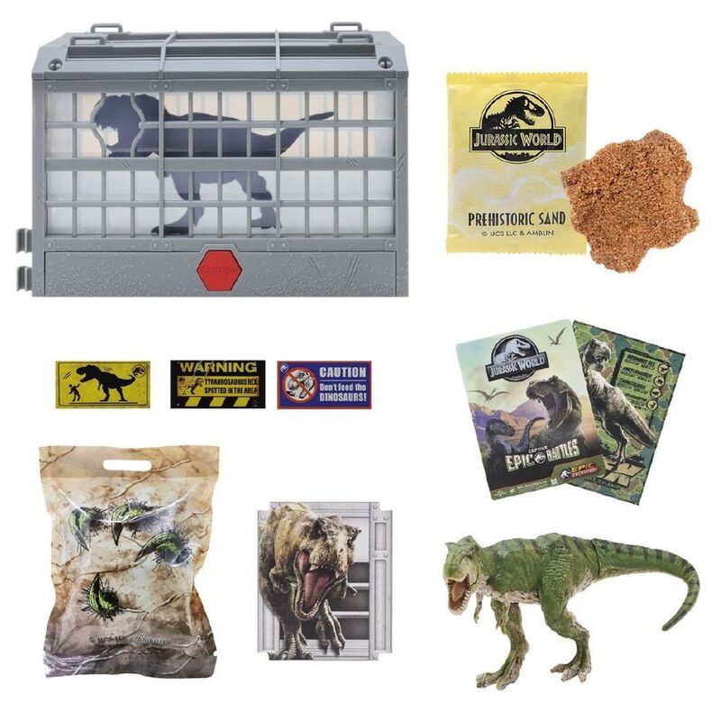 Dinosaurs cannot be contained in the NEW Captivz Epic Battles Rumble Cage. With a Supersized T.Rex caged inside; Will you dare open to release the fury? Including 3 terrifying sound effects, epic rumble and lights feature…you won't want to turn your back on the cage! It also includes an exclusive Collector Card and prehistoric sand.