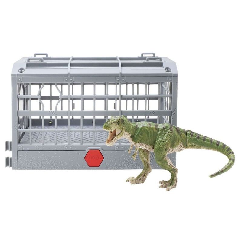 • Features a Pop N Lock Supersized T.Rex caged inside