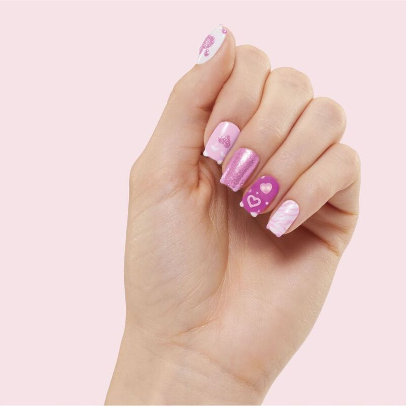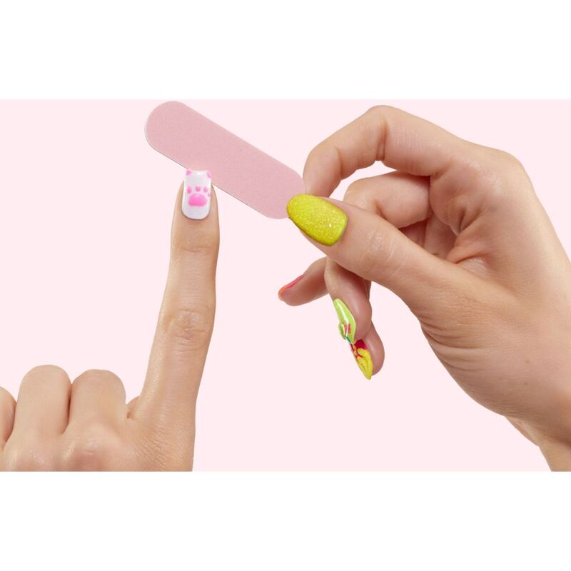 Now you are all set to get creative and customize your own nails - peel and press the nail adhesives, press on a set of nails, use the nail file to shape them, then paint them, and finish off your designs with glamorous glitter and café -themed stickers for more sweet, styling fun!