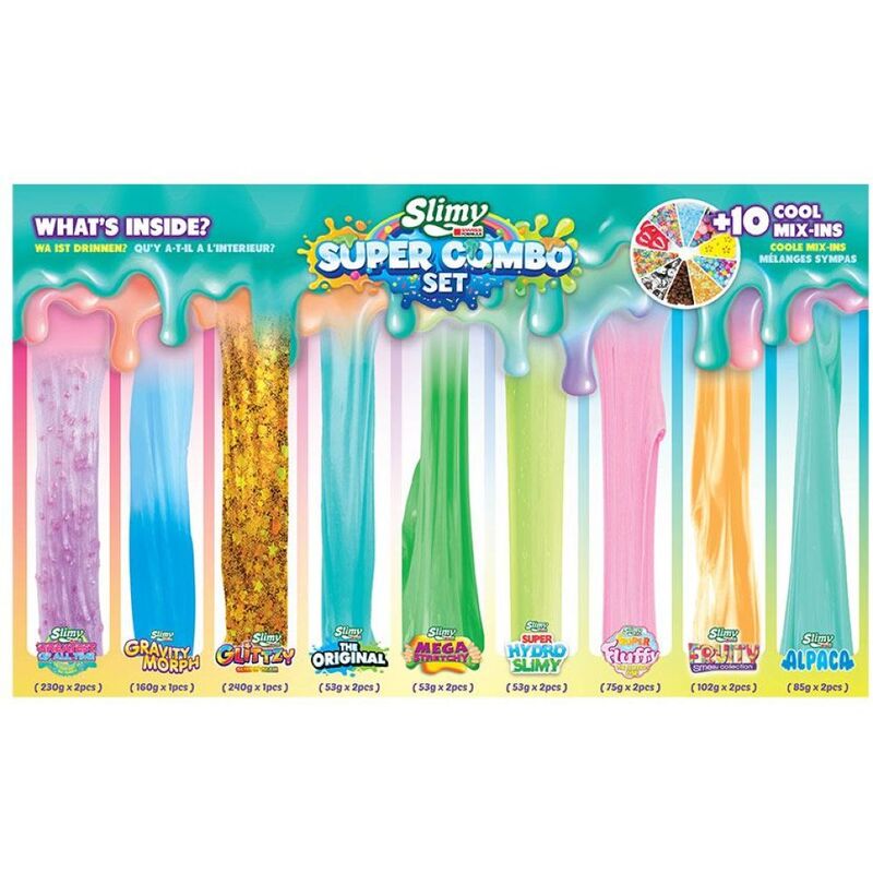 Dive into a world of ooey-gooey fun with the Slimy Super Combo Set! Packed with 9 different types of slimy goodness, this set is perfect for hours of sensory play. With 16 pots of ASMR-tastic slime and 10 cool mix-ins, you can mix, stretch, squish, and switch up your slime creations to your heart's content. And with over 1.6 kilograms of slime to explore, the fun never ends! Best of all, it's super safe with no parabens, so you can let your creativity run wild without a worry. Get ready to experience the ultimate slimy adventure!