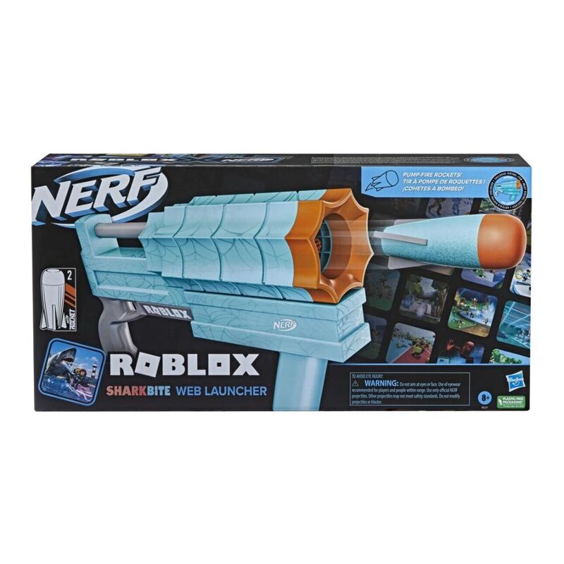 - NERF ROBLOX SHARKBITE: WEB LAUNCHER ROCKET BLASTER: This rocket-firing blaster takes its inspiration from the Roblox experience SharkBite by Abracadabra Studio