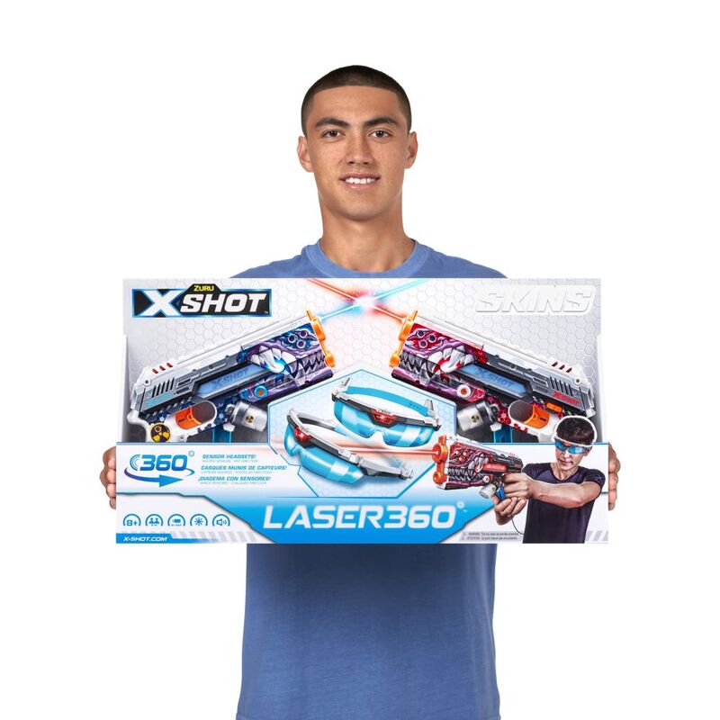 • Ultimate Laser Experience: The X-Shot Skins Laser 360° comes with 2 laser blasters and two 360° infrared Headsets. Everything you need for a laser battle for two.
