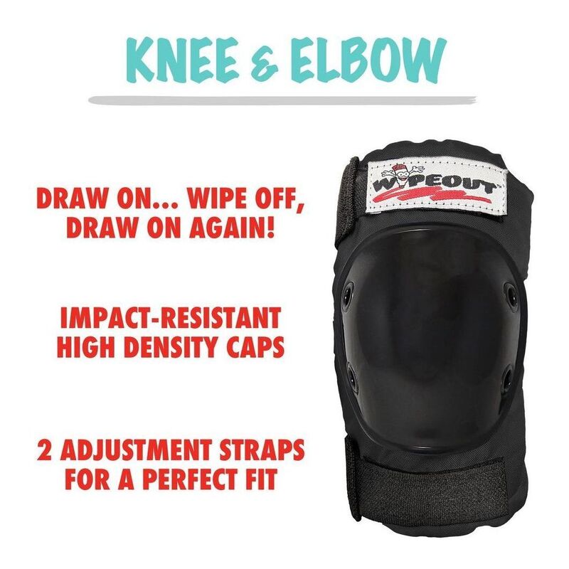 Wipeout Dry Erase Kids' Pads Black Wp4102 (3 Pairs) (Knee/Elbow/Wrist) (Ages 5+)