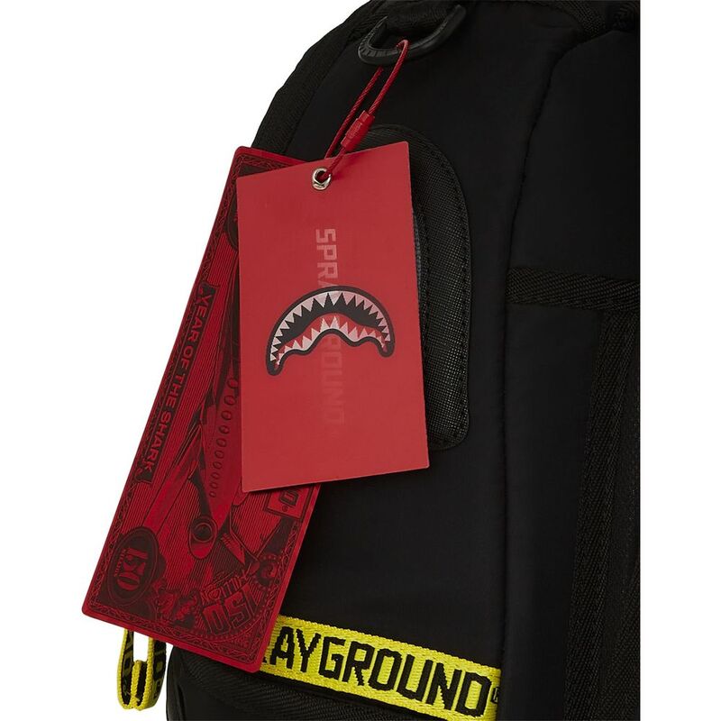 Sprayground Shark Central Yellow Tape DLX Satin Backpack
